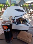 V sobotu jsem dal vědět Karlovi, že mám v plánu delší jízdu na neděli. Až ráno jsem zjistil, že pojede se mnou. V 7:30 vyrážíme, jako vždy kašlu na navigaci a mířím neomylně na Mořice (1) k mé oblíbené benzince na kávu do porcelánu. Po zahřátí, pokračujeme na Prostějov, Konici a Jevíčko. Tím pádem mohu napravit poslední pochybení a v Jaroměřicích (2) zastavit u „Obecního úřadu“, který je v bývalé tvrzi. Je tady mlha a do Jevíčka ještě houstne. Jen co začínáme vyjíždět z údolí, máme sluníčko a trochu se i oteplí. I nějaké ty rozhledy se objevují. Konečně Vendolí, kde máme první plánovaný bod. Je jím „Thorovo kladivo“ (3). Děláme si fotky a domlouváme, kde se bude tankovat. Karel chce OMV a já Orlen. První je v Hlinsku a druhý ve Ždírci nad Doubravou. Koukám na navigaci a pořád mi tam svítí bod na kladivo. Mažu tedy zastávku a nechávám se vést Karlem po hlavní cestě do Hlinska na OMV (4), dále zase vedu já, jen ve Ždírci netuším kde je Orlen. Kontroluji v mapy.cz a jsme tam (5). Tankuji totiž 100 Vervu a ta není všude. Původně jsme zde uvažovali o jídle, nakonec padlo rozhodnutí, že ještě dojedeme do Chotěboře. Karel si chce vyfotit pivovar. U něho hledám, kde se najíme a zaujala mě restaurace „Hrom do police“ (6). Je dobře umístěná a má i parkoviště. Protože svítí slunce, sedáme na terasu. Dostávám chuť na Fish & Chips, co mají v nabídce. Dokonce hranolky měli v anglicky tištěném pytlíku. Dobře najedeni sedláme motorku a skútr a vyrážíme. V jednom místě odbočujeme a koukám, že to tady znám. Dokonce i navštívenou „Tvrz Železné Horky“ vidím. Jenže Karla ve zpětném zrcátku nevidím. Po chvilce hledání jej nacházím pod tvrzí (7). Pokračujeme a vjíždíme do obce Žižkovo pole, teď si uvědomuji, že je něco špatně a jedeme jinam, než máme. Zastavuji u Žižkovy mohyly (8), kde kontroluji mapy.cz. Tak zjišťuji, že jsem u Thorova kladiva smazal ten nejdůležitější bod dne. Domlouváme se k návratu, protože jej musím mít. Trochu se nám tak posouvá čas dojezdu, ale jdeme do toho. Za Havlíčkovým Brodem se objevuje značka slepá cesta za 20km. Ignoruji to a dojíždíme do Habrů (9), kde je ta uzávěra. Navigace chce dále, ale Karlovy mapy.cz nás otáčejí. Takže jedeme podle nich až do Číhoště ke „Geografickému středu České republiky“ (10). Uděláme si fotky a řešíme kudy domů. Zadávám cestu do Tišnova a vyrážíme, jenže v Habrech opět navigace netuší, ani já netuším, kudy jet. Beru to intuitivně až po jednu křižovatku, kde fakt nevím. Karel poradil přesně opačně než navigace. Nakonec se z toho vymotáváme a projíždíme opět Chotěboří a Ždírcem nad Doubravou. Po hlavním tahu se dostáváme do Nového Města na Moravě, opět ignoruji navigaci a volím si trasu podle sebe. Jak jsem tady mnohokrát zmínil, cestu do Tišnova mám rád po hřebení přes Dolní Rožínku. Povrch i profily zatáček dovolují jet svižně. A to se nám hodně dlouho daří. Zastavujeme na Orlenu v Tišnově (11). Prohodím pár slov s motorkářem na modré SUZUKI a řeším, jakou trasu zvolit. Původní plán byl přes Blansko, jenže je už hodně pozdě. Volíme přes Brno. Nadšený nejsem, naštěstí to vyšlo perfektně, nikde žádná kolona a ucpaná cesta. Brnem projíždíme jako nůž máslem a za chvíli sjíždíme z dálnice na Slavkov u Brna. Jedeme v krátké koloně aut, naštěstí jedou svižně a nikdo se neloudá. V Buchlovských zatáčkách předjedu, co se dá a při tom ztrácím Karla. Ten mě u Trampa dohání. Domů klasiku přes Kunovice. V Bílovicích na semaforu se rozloučíme, protože Karel nepojede domů. Celý výlet i s tím blouděním dal krásných 536km