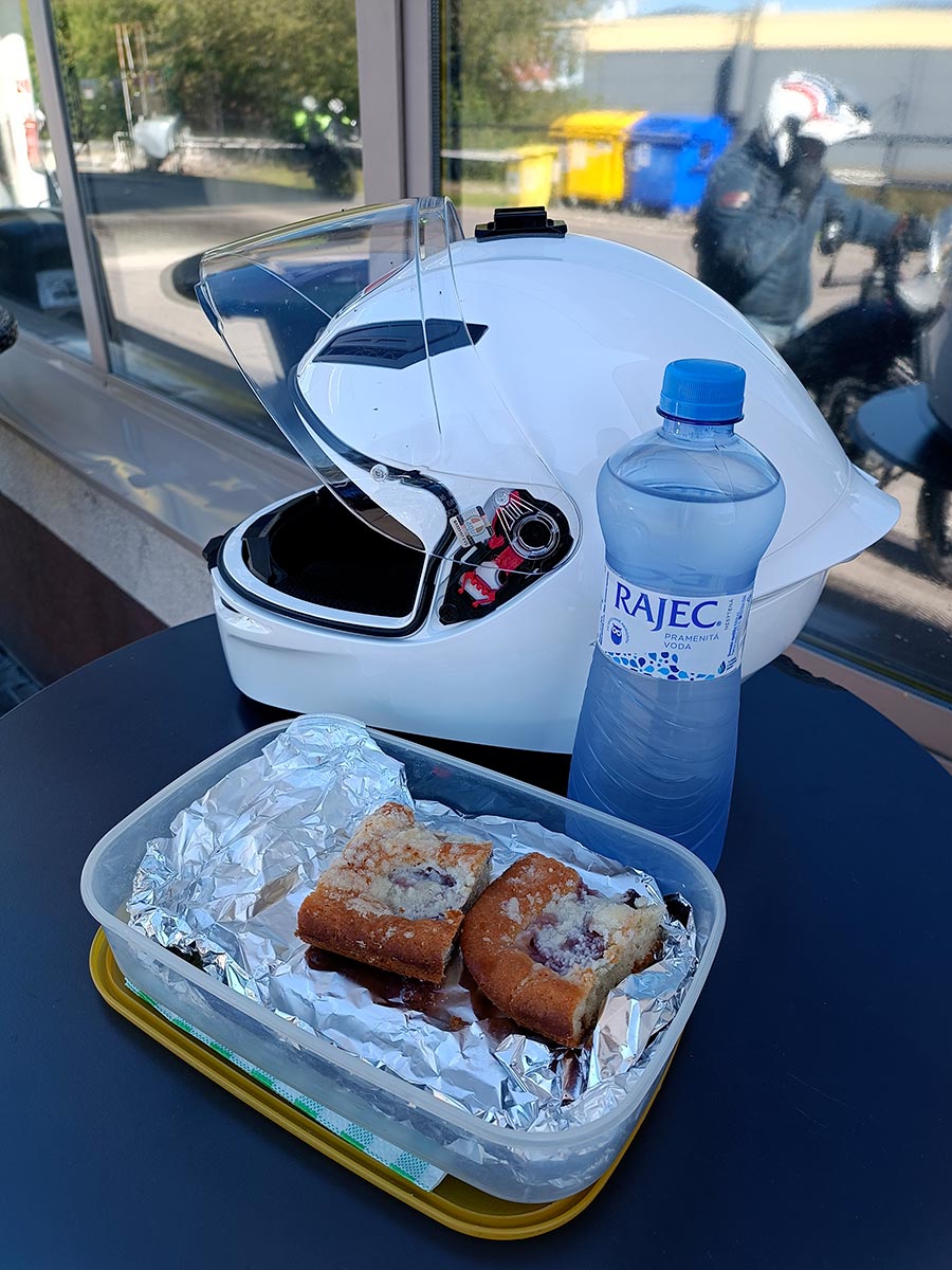 Když už mám BONNIE doma, na FB jsem zjistil, že cesta z Rajce na Fačkovské sedlo je opravená a hlásí letní počasí, je jasné, že bude jízda na Slovensko. Po naplánování trasy do navigace mi je jasné, že to bude hodně na pohodu. Vyrážím v 9 hodin, hned v Luhačovicích tankuji opět 100 Vervu (1), aby se zbytky 95 hodně naředily. Poprvé letos zkouším na doporučení dát aditivum na zimu. Směr Slovensko vedu mojí nejoblíbenější trasou na Dubnici nad Váhom a potom na Ilavu. Tady jako vždy zastavuji na benzině (2), protože mám dneska kamery a potřebuji je zapnout. Při příjezdu mám pocit, že je tady moto-sraz. Motorek jako much, asi to bude celý den, když je tak perfektní počasí. Po vyjetí se přidávám ke skupině, co míří stejným směrem a držím se jich až do Košec. Nyní mě čeká jen motorkářská zábava. Mám tuto cestu do Čičman hodně v oblibě. Nebývá na ní moc provoz a zatáčky jsou suprové. Jde to poznat i tak, že do protisměru jede spousta motorkářů. V Čičmanech zajíždím do obce (3), chci si udělat pár fotek pomalovaných domů. Jenže pořádají nějaký „jarmark/pouť“ a cesta je uzavřená. Naštěstí zrovna u restaurace. Dávám si kofolu a sleduji cvrkot přijíždějících motorek. Moc fotek nedělám, nechci odcházet daleko od BONNIE. Mám na ní poprvé navigaci. Až na Fačkovské sedlo mě teď čeká opět perfektní svezení. Hlavně opravený výjezd nahoru moc potěšil. Po starém povrchu bych na BONNIE nejel. Nahoře zajíždím na parkoviště (4) a stavím si motorku k focení s Kľakem v pozadí. Asi tak, jak měl ogara, co dával info o opravě, na FB. Pokračuji a v Kľačně přemýšlím o změně cesty, jenže mi nikdo nepotvrdil, že by na Kláštor pod Znievom byla opravená cesta. A pro BONNIE tam není ideální povrch. Nedá se, do Prievidze tu nudu překonám a hned na začátku si u benzinky (5) dělám přestávku na oběd. Mám od Evy švestkový koláč. Odpočinutý vyrážím na Bojnici, je to opět jedna z perfektních moto-tras. Zámek si prohlížím jen ze sedla motorky a už se vrhám do příjemných serpentin. Jak projíždím Nitrianske Rudno, opět si vzpomenu na Michala Nováka ze Žiliny. Je to tím, že těsně před úmrtím, měl na FB fotky od místní vodní nádrže. Nyní mě až do Ilavy čeká opět jen zábava, bohužel přerušená kvůli nové helmě. Než si to sedne, tak mě z ní pořádně bolí uši. Při výjezdu na „Homôľku“ dojíždím motorkáře na choppru a raději si ho držím od sebe dál. Na rovině ujíždí a před zatáčkou hrozně zpomaluje. Dneska je u „bufetu Partyzán“ narváno, jako všude na oblíbených místech motorkářů. Takže jen projedu a soustředím se na předjetí choppraře. Podařilo se, ale zase mám za zády nedočkavou Audinu. Jakmile to jde pouštím ji před sebe, ať mě moc netlačí. Opět u benzinky v Ilave (6), jen motorek poskrovnu. Do Luhačovic jedu stejnou trasu jak dopoledne, jen ve Slavičíně musím kvůli helmě zastavit a uvolnit uši od bolesti. Ještě potřebuji dotankovat co nejblíže domovu, proto volím cestu přes Zádveřice na Zlín, kde na „Orlenu“ (7) cvrnknu trochu aditiva a dotankuji 100 Vernu. BONNIE je tak nachystaná na zimu. Po 7 kilometrech v 15:30 hodin parkuji. Celý výlet dal 268km.