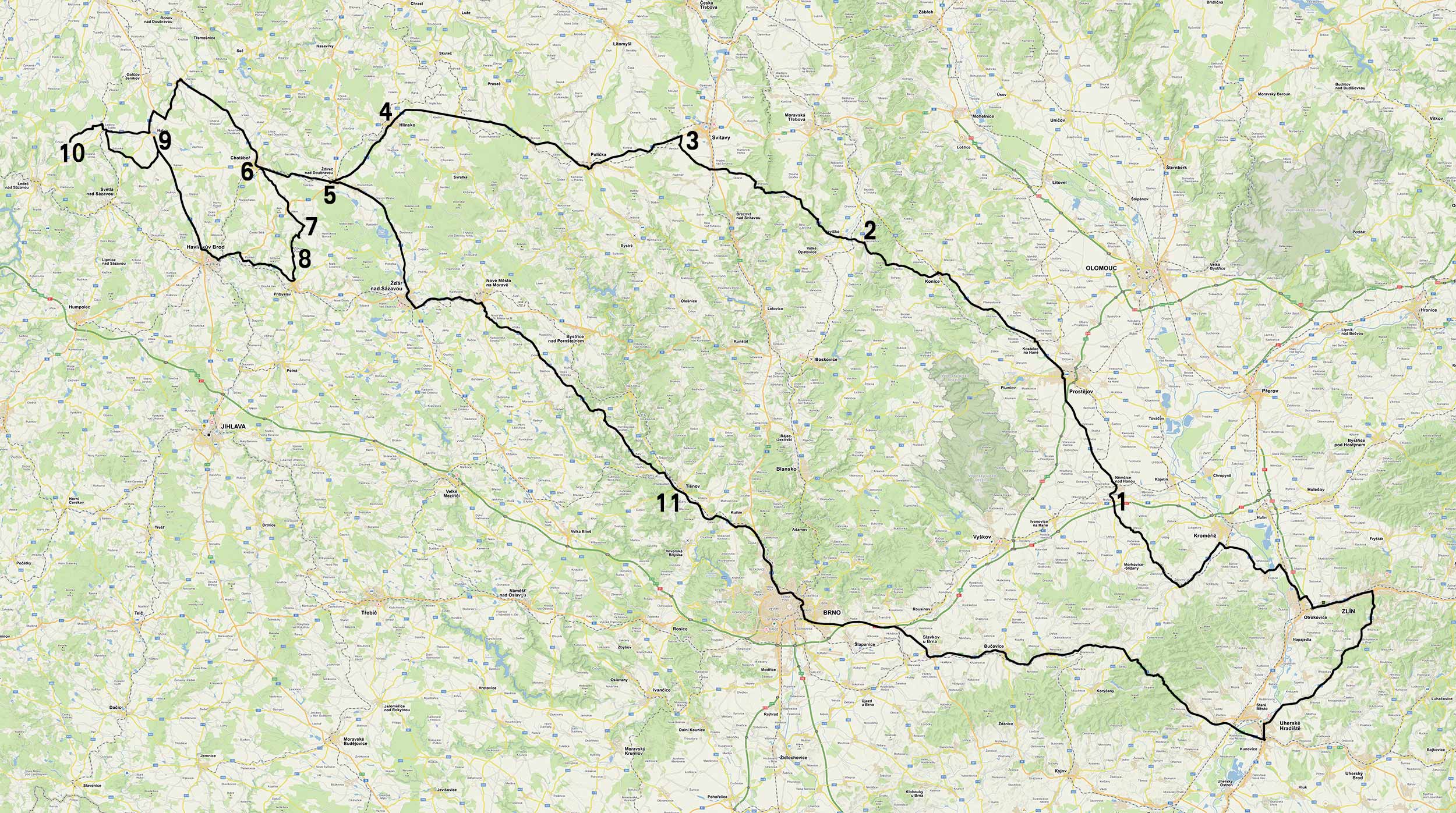 Během přípravy na čtvrteční jízdu mě zavolal Karel, co budu dělat. Dávám mu info o výletě do Orlických hor. Má zájem, který trochu schladím, vyjíždím v 6 hodin. Nakonec se rozhodl přidat. A doopravdy se nám daří v těch 6 vyrazit. Začátek je jenom o tom, jak se dostat do Šternberka rychle a bezpečně. Přerov je trochu ucpaný a musíme se proplétat kolonami. Naštěstí se to daří. Olomouc je jin na pohodu. Ve Šternberku (1) se musím trochu přiobléct, je mi chladno a budeme vyjíždět do hor. Karel už má dávno zapnuté vyhřívání. Konečně začne ta správná jízda. Do Rýmařova nejraději používám cestu na Huzovou, je tady malý kousek rozbitý, ale zbytek je v perfektním stavu a suprově se dá pojezdit. Zastavujeme na mnou oblíbené benzině (2). Kde mají kávu v porcelánu. K tomu si ještě přidávám sladký koláč. Nyní nás čeká cesta do Králíků. Do Sobotína se jede po hlavním tahu, až na jeden kamion je to paráda, potom se odbočuje na okresky. Mám v navigaci klikaté cesty. Ty nás přivádí do Velkých Losin, kde už musí Karel tankovat (3), dále by nedojel. Abych se vyhnul Šumperku, raději do Hanušovic jedu po horší cestě, kterou ještě navíc vylepšují opravováním posypem. Musíme jet hodně opatrně, někde je toho silná vrstva. Z Hanušovic na Králíky se jede údolím podél Moravy, cesta je poměrně slušná a dá se tady pěkně projet. V Králíkách (4) tankuji, během toho se Karel zapovídal s pánem, který mu doporučoval, kde se má zastavit. A protože máme slušný čas, navrhuji rozhlednu Val kousek od kláštera. Vyrážíme kousek zpět a do kopce. Rozhledna je na dobrém místě (5), jde vidět Kralický Sněžník, Stezka v oblacích, Sky Bridge, rozhledna Křížová hora, rozhledna Suchý vrch a hlavně Orlické hory. Ke klášteru nakonec nejedeme a už míříme do Orlických hor. Protože jsem si hodně oblíbil cestu po Polské straně, hned za Králíky tam zamíříme. Začátek je hodně nudný, jede se pořád v obci až do Międzylesie, kde konečně odbočujeme zpět k hranicím. Kousek od Zemské brány cesta začíná kopírovat Divokou Orlici, která tvoří státní hranici. Je trochu úzká, ale kvalitní s žádným provozem. Mám tady v Niemojówu místo k zastavení (6). Má to být zřícenina zámku, podle fotky z mapy.cz docela zajímavá. Jenže skutečnost je mnohem horší. Je to tak zarostlé a oplocené, že se to nedá nijak fotit. Nakonec vše zachraňuje kostel Navštívení Panny Marie. Pokračujeme až do Mostowic, kde překračujeme hranici a začínáme se vracet zpět. Už se nám zde objevuje větší provoz, ale oproti letní sezóně je to prázdné. V Neratově (7) po mnoha letech dělám zastávku. A když tady není zákaz vjezdu, vyjíždím až ke kostelu Nanebevzetí Panny Marie. Karel se trochu zdržuje, dělá si foto na příjezdové cestě. Procházíme si kostel a tak mohu porovnávat změny, které od mé poslední návštěvy přibyly. A je jich hodně. Pokračujeme a ještě dělám zastávku u kostela sv. Jana Nepomuckého. Jsme tady sami, v klidu si tak můžeme prohlédnout otevřený kostel. Je čas oběda a na trasu jsem kvůli tomu dal chatu U Rampušáka. Mám na ni mnoho vzpomínek ještě ze socíku a psích návštěv na Pastvinách. K mému velkému zklamání je ZAVŘENO. Sjedeme jen kousek k Zemské bráně (8). Karlovi doporučuji budoucí projití údolí Divoké Orlice. Je to nádherný výšlap. Hlad se chystáme zahnat v Českých Petrovicích, Na Rozcestí (9), jak se restaurace jmenuje. Moc velké nadšení nemají, ale nakonec jsme si domluvili smažená sýr a grilovaný Hermelín. Paní asi tušila, jakmile obsadíme venku stůl, budou zákazníci přibývat. Přesně to se stalo. Protože dojezdový čas je perfektní, přidávám do trasy ještě rozhlednu Mariánku (10) před Lanškrounem. Musíme tak opustit hlavní cestu, mě to nijak nevadí. Bohužel rozhledna je uzavřená, jak bývá v naší zemi zvykem. Za EU dotace postavit a potom kašlat na údržbu. Ještě si projedeme poutní místo na Mariánské Hoře a míříme do Lanškrouna. Mám tady opět benzinku s kávou do porcelánu. Jenže po změně původní trasy nás navigace navádí na Off-road. Mně to nevadí, mám cenduro, jenže Karel se svým hybridem skútr/motorka asi nehýří nadšením. Nakonec to dal a můžeme si tak vychutnávat dobrou kávu (11). Z Lanškrouna do Tatenic je to dobré svezení, ale z nich je to čirá nuda. Zpestřená uzavírkou mostu a objížďkou přes dědinu. Na semaforu se nám daří dostat před auta a nemusíme se nijak zdržovat. Z Moravské Třebové na Chronici to mám rád a dobře se tady dá pojezdit, potom dělám chybu a poslouchám navigaci, místo přes Jevíčko to na Jaroměřice bereme přes Biskupice. Cesta otřesná i na SUMOKI. Jaroměřice jsem dal do bodů k navštívení. Mám rád poutní místo Hora Kalvárie (12). Jen výjezd k němu se oproti poslední jízdě hodně zhoršil, už při nájezdu nahoru mě ustřelilo přední kolo, ani nevím, jak jsem to ustál. Za to nahoře se vše v dobré obrací. Karlovi ještě vykládám o místním zámku, ke kterému nakonec stejně neodbočím. Bude si ho muset navštívit sám. Míříme na Konici a potom směrem na Olomouc. To je výborná trasa na jízdu. V Drahonovicích ještě odbočím k tvrzi Černá věž (13) (která je bílá), svítila už při příjezdu, neodolal jsem. Domů navigaci sleduji jen napůl, mám to zde hodně proježděné a volím si cestu podle své nálady a dojezdového času. V Tovačově dostal Karel nápad navštívit pivovar v Kvasicích, jenže bychom dojeli pár minut po zavíračce. Poslední úsek cesty vybírám se zatáčkami, pořád jich není dost. Domů dojíždíme ve výborném čase 18:30 po 465km